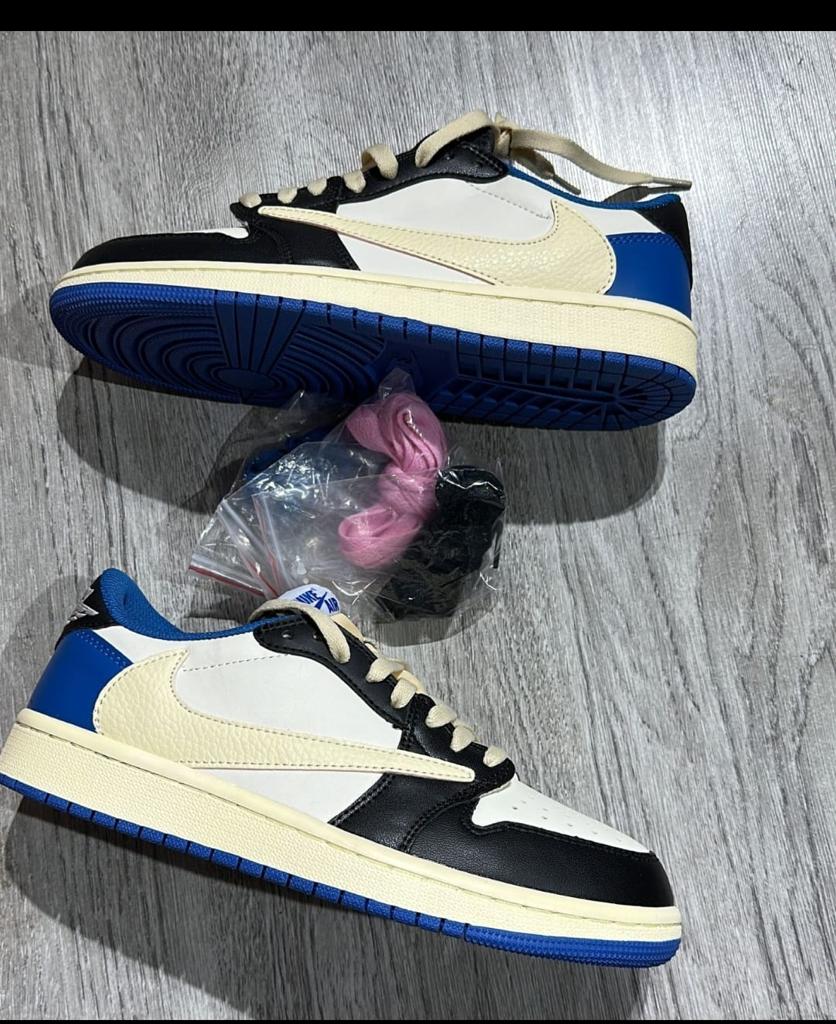 These AJ1s have been created in collaboration with Jordan, American rapper Travis Scott and Hiroshi Fujiwara’s Fragment Design. They’re crafted from panels of white, black and blue leather and set apart by a collection of logos. Travis’ inverted Swoosh details the sides while the Cactus Jack branding and the iconic double lightning motif are etched into the left and right heels accordingly. Ever present, the Wings Insignia lends them a final stamp of identity.